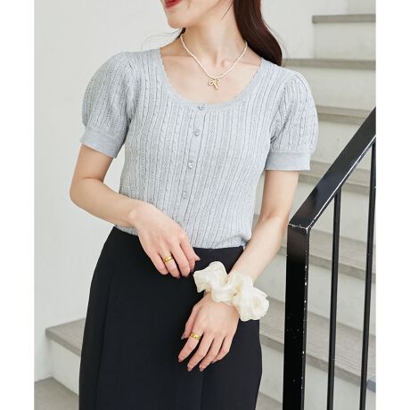 同色のハートボタンや襟元のスカラップデザインで程よく甘さをプラス。