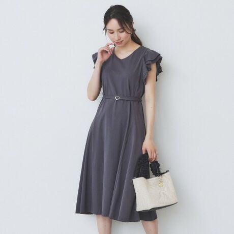 シルケットVネックダブルフレアワンピース【洗濯機可・接触冷感・UVケア】
