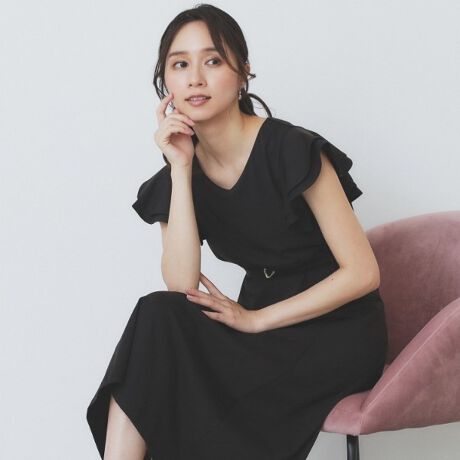 ・ウエストに配された変形バックルのベルトがシルエットを引き締め、スタイルアップが期待できます。