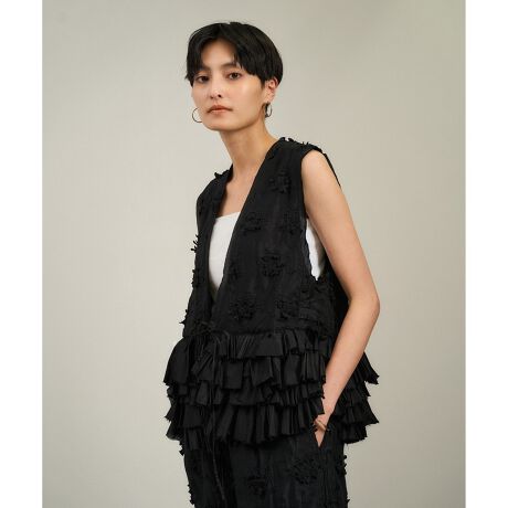 裾にあしらったフリルは、大胆な断ち切りになっており、