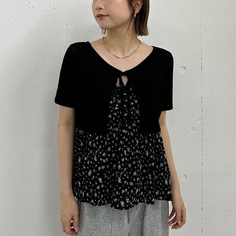 シアー感が可愛い小花柄のキャミソールと、リブ素材のカーディガンがセットになった嬉しいアイテム。