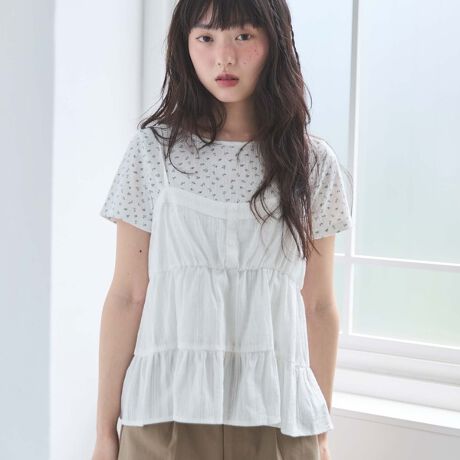 トレンドの花柄カットソーとキャミソールのセットアイテム。