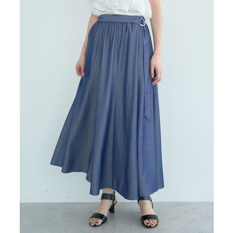 爽やかなシャンブレー素材で仕立てたフレアスカート。