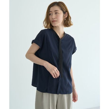 タイを軽く結んで垂らすだけで女性らしい着こなしをお楽しみいただけます。