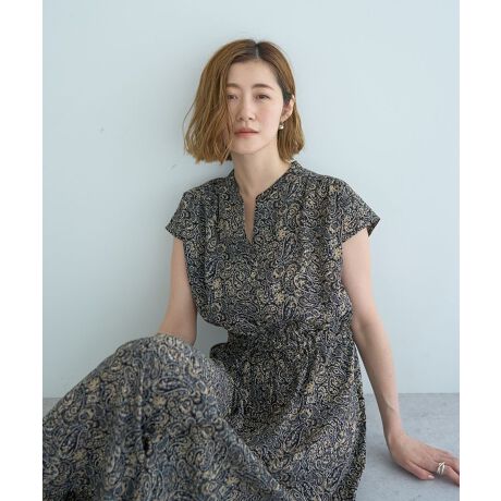 ペイズリーモチーフの総柄プリントが目を惹くシャツワンピース。