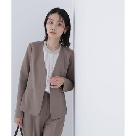 <洗濯機洗い可>ナチュラルストレッチ素材を使用した涼しげなノーカラージャケット。ミニマルでも、フロントホック付きや少しメランジ感のある素材でこなれた印象に。同素材のパンツとSETUPのスーツスタイルとしてもオススメです。洗濯機で洗えるのも嬉しいポイントです。<素材>ドライタッチで涼しく肌触りの良い素材を使用。チラチラとした見え方できちんと見えしながらも透け感のある印象。ナチュラルストレッチで着心地抜群な素材です。<詳細>仕様・前ホック裏地・なし透け感・なし / 光沢・なし / 伸縮性・ややあり 生地の厚さ・普通<シリーズ>■テーパードパンツ[品番:0175230611]■ワイドパンツ[品番:0175230612]■テーラードジャケット[品番:0175250612]※モデルの着用画像の場合、光の当たり具合により、実際の色味と異なって見えることがございます。色味は、商品単体の画像をご参照ください。