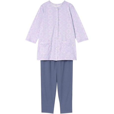 【パジャマ(8分袖ロングパンツ)】「ワコール人間科学研究開発センター」の女性の体型データをもとにしたグランダー独自のサイズ設計は、ゆったり快適な着ごこち。グランダーならではの便利でやさしい工夫をほどこした親切設計のパジャマです。・着ごこちゆったり親切設計のポイント1.背・脇に縫い付けネームがなく、やさしい肌あたり2.留めはずしラクラク大きめボタン3.やわらかなゴムでウエストがラク4.深めの前合わせですきまから胸もとが見えにくい5.ズボンの前後がわかりやすい目印付き6.くいこみにくく動きやすいマチ付き7.裾口、袖口、ウエストにゴム替え口・本体に、綿100%の天竺素材を使用・円形の幾何学模様をやさしく品のある印象にしたプリント柄・無地のボトムで、くつろぎ時間のルームウェアにもおすすめ【サイズ詳細】SP:身幅49.5cm 着丈63.5cm 身丈66.0cm 肩幅37.0cm 袖丈41.5cm ボトム脇丈90.0cm 裾まわり32.5cm ウエスト55.0cm 股下(レングス)62.0cm ヒップ101.5cmMP:身幅53.5cm 着丈63.5cm 身丈66.0cm 肩幅39.0cm 袖丈41.5cm ボトム脇丈90.5cm 裾まわり34.0cm ウエスト60.0cm 股下(レングス)62.0cm ヒップ106.5cmLP:身幅57.5cm 着丈63.5cm 身丈66.5cm 肩幅41.0cm 袖丈41.5cm ボトム脇丈91.5cm 裾まわり35.5cm ウエスト65.0cm 股下(レングス)62.0cm ヒップ111.5cmM:身幅53.5cm 着丈68.5cm 身丈71.5cm 肩幅40.0cm 袖丈43.0cm ボトム脇丈95.5cm 裾まわり34.0cm ウエスト60.0cm 股下(レングス)65.5cm ヒップ109.5cmL:身幅57.5cm 着丈68.5cm 身丈71.5cm 肩幅42.0cm 袖丈43.0cm ボトム脇丈96.5cm 裾まわり35.5cm ウエスト65.0cm 股下(レングス)65.5cm ヒップ114.5cm※出来上がり寸法を表示しております※アイテムによって柄の出方が異なりますのでご了承ください。