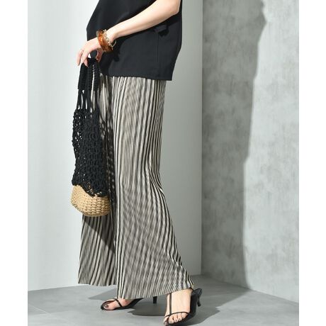トレンドレスに活躍するストライプ柄が新しく仲間入りです。定番のプリーツパンツに、リラックス感のあるソフトワイドシルエットで着こなしやすく今年らしい雰囲気に仕上げました。さらりとした清涼感のある素材が気持ちよく、いつものスタイルに抜け感を演出してくれます。ウエスト総ゴム仕様ではきやすく着脱時のストレスも軽減してくれ、普段使いからトラベルやレジャーまで大活躍間違いなしの1枚です。トップスはシンプルなカットソーやTシャツを合わせてパンツが主役のコーディネイトを楽しんでください。