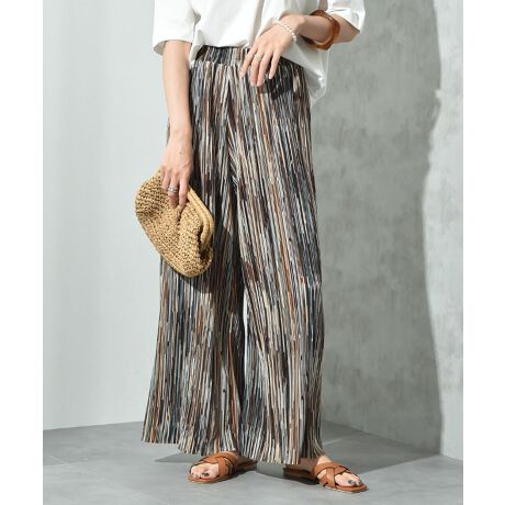 トレンドレスに活躍するストライプ柄が新しく仲間入りです。定番のプリーツパンツに、リラックス感のあるソフトワイドシルエットで着こなしやすく今年らしい雰囲気に仕上げました。さらりとした清涼感のある素材が気持ちよく、いつものスタイルに抜け感を演出してくれます。ウエスト総ゴム仕様ではきやすく着脱時のストレスも軽減してくれ、普段使いからトラベルやレジャーまで大活躍間違いなしの1枚です。トップスはシンプルなカットソーやTシャツを合わせてパンツが主役のコーディネイトを楽しんでください。