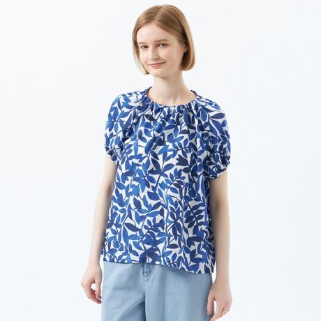 ギャザーディティールを贅沢にあしらった、フレンチスリーブブラウス。袖下からラフに垂らしたリボンがアクセントに。