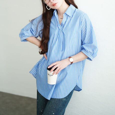 マルイウェブチャネル   /   ゴールドジャパン   /   トップス   /   ブラウス   /   【大きいサイズ】 接触冷感背中メッシュストライプシャツ 大きいサイズ レディース トップス ブラウス
