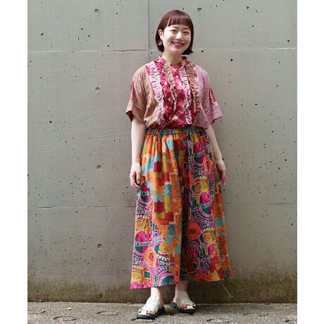 スカート見えするガウチョパンツは風をしっかり通らせ、活発的なお洒落が完成します。