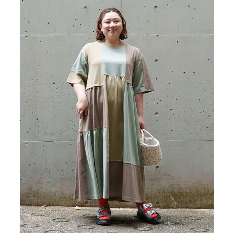 3色の生地をミックスしてワンピースを作りました。