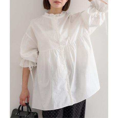 オールシーズン着用可能なコットン100%素材のブラウス。