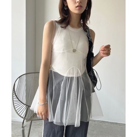 しっかり透け感の薄手チュール素材で仕立てたチュニック。