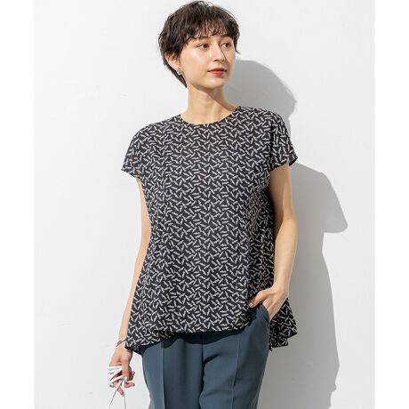 夏らしいエスパドリーユモチーフのプリント生地を使ったAラインのフレアブラウスです。動くたびに広がるヘムラインが軽やかで抜け感のあるスタイルを演出します。気になる腰回りをさりげなくカバーしてくれるのも嬉しい利点。肩はフレンチスリーブですっきりと仕上げています。華やかな着映えも楽しめる一枚ながら、きちんとした印象でも着こなせるので、シーンレスに着用いただけます。デニムと合わせた夏のカジュアルスタイリングもおすすめです。カラーは、シックな印象のブラックプリント(#505)と品の良い着こなしを叶えるネイビープリント(#575)の2色展開です。