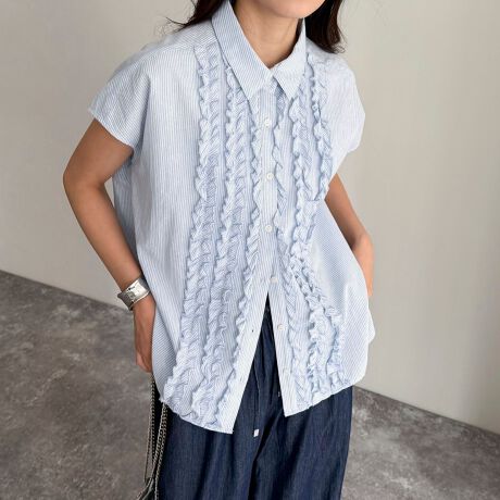 ふんわりフリルで魅せる、フェミニンな大人ブラウス