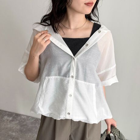 ・カジュアルなフード付きデザインに、上品なシアー素材を組み合わせることで、大人が楽しめるバランスの取れた1枚に仕上がりました