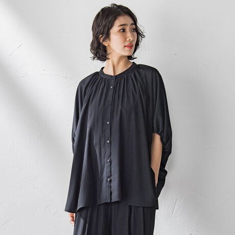 着こなしやすいバンドカラーで、カジュアルにもきれい目にもお使いいただける万能なデザイン。