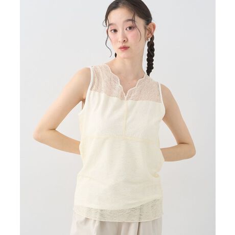 デコルテ周りをきれいに見せる2WAYデザインタンクトップ。繊細なレース使いが女性らしい華やかな1枚です。内側に接触冷感素材を使用することで、暑い季節も爽やかな着用感を実現。シャツやワンピースなどのレイヤードコーディネートにぴったりなおすすめのアイテムです。透け感[あり]