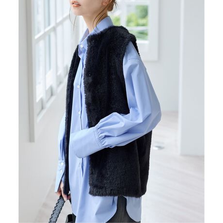 ふわっと心地よいフェザー素材が素敵な着映えベスト。
