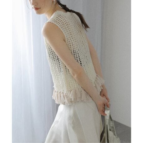 軽やかな編地で仕上げたノースリーブのトップスはペーパーヤーン×コットンのナチュラルな風合いが魅力です。