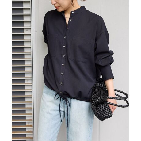 裾を共ひもで絞ることで、シルエットを調整できます。ゆったりとルーズに着たり、コクーンシルエットをつくったりと色々楽しめます。羽織としても使えるので着こなしの幅が広がります!