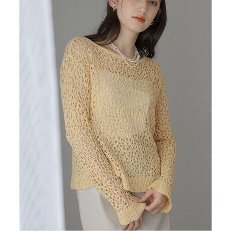 リラックス感のあるサイジング、クロシェ編みなので長袖でも涼し気。