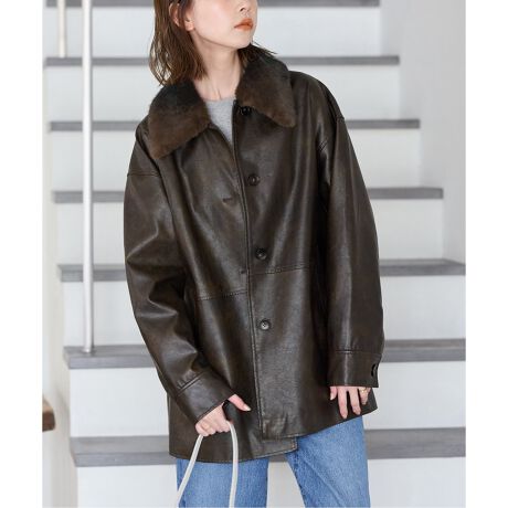 取り外し可能なファー襟付き。リアルレザーのような表情がありながら、ウォッシャブルといううれしい素材です。