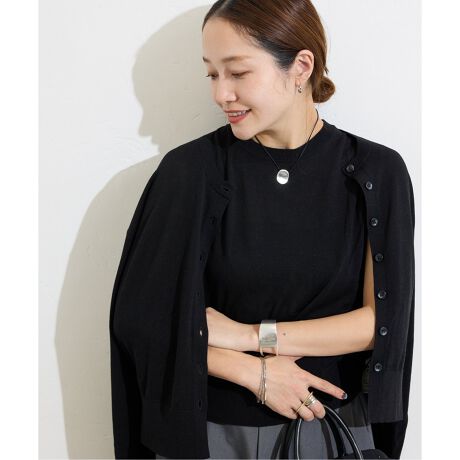 程よいサイズ感のすっきりとしたノースリーブと、着丈のバランスが使いやすいカーディガンのセットです。別々でも活躍するので、季節の変わり目にアンサンブルニットは優秀です。暑い時は、カーデを肩に巻いて着こなすのもおすすめです。