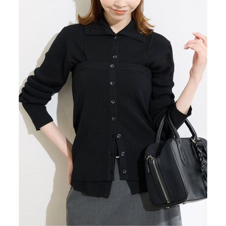 ハイネック風にもなって着こなしが楽しめる襟付きリブカーディガン。