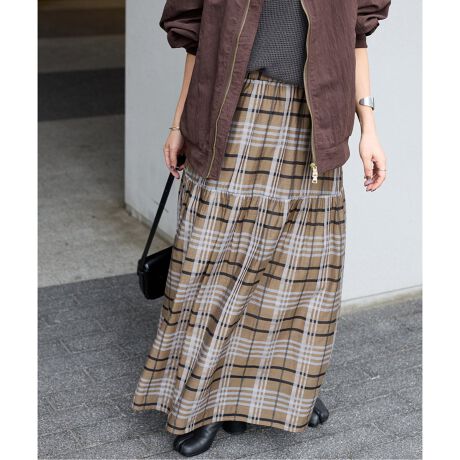 ウエストゴムで楽に穿けて、腰回りはすっきり、切り替えで裾にボリュームを出した着映えするデザインにしています。