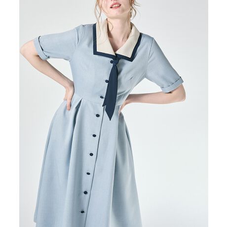 スカーフタイと、衿の配色がとびきりレトロなワンピース。