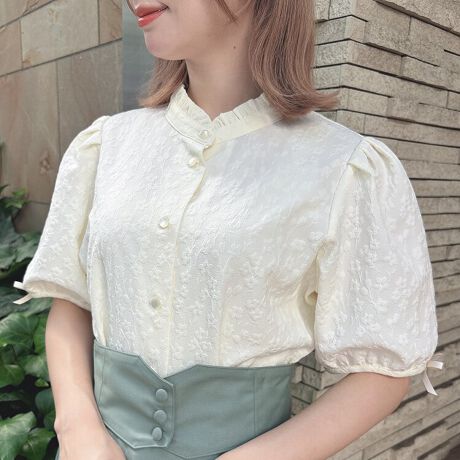 ぷくぷくとした立体感のあるフラワーモチーフのジャガード素材がキュートなブラウス。