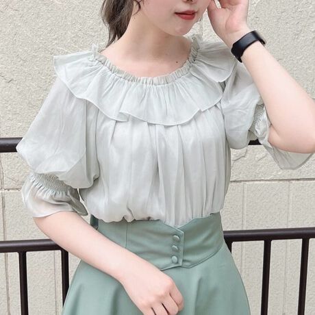 優しいシャイニー感のあるシアー素材がキャッチーなブラウス。