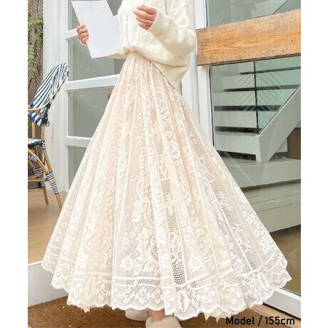 贅沢にレース生地を使用し、たっぷりとしたフレアシルエットに。