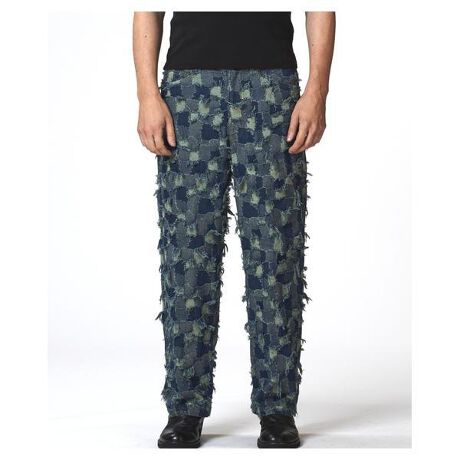 存在感のあるパッチワークデザインが特徴のワイドデニムパンツ