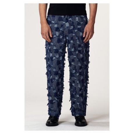 存在感のあるパッチワークデザインが特徴のワイドデニムパンツ