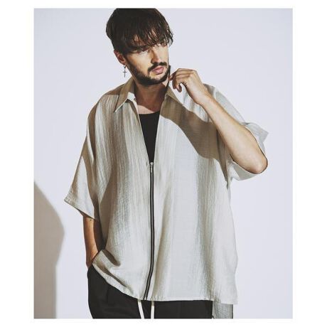 インナーとのレイヤードで、着こなしに奥行きを持たせたい時にこの V/NドルマンスリーブZIPシャツ は、スタイリングの主役にも脇役にもなれる、