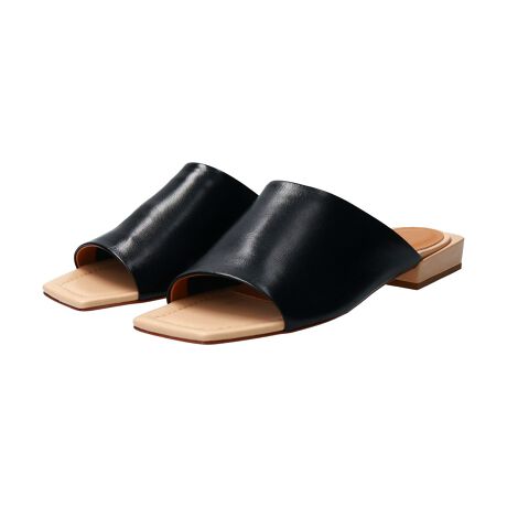 スクエアトゥでシャープな印象をプラスしたフラットサンダル。