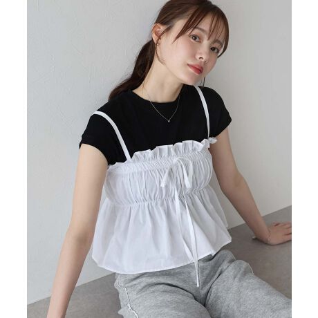 バスト部分には内側にゴムを施し、体にフィットするので1枚で着てもズレにくく安心です。