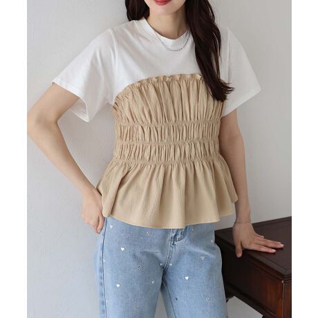 Tシャツにビスチェをレイヤードしているかようなドッキングカットソー。