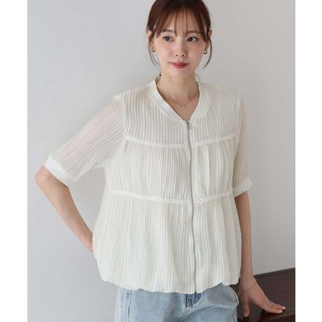 女性らしく涼しげなプリーツデザインのブルゾン。