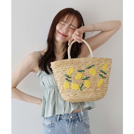 可愛くて大容量◎フルーツ柄×ストロー素材がキュートなカゴバック