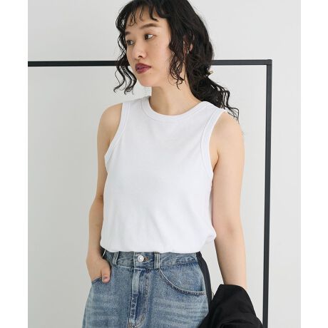*前後2WAYで着こなせるベーシックシルエットのタンクトップ。前後2wayで着られるタンクトップは、アメスリ風のデザインで、ネックが詰まったようなコンパクトな開きが特徴。