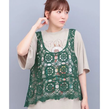 ナチュラルな雰囲気漂う、かぎ編み風ベスト