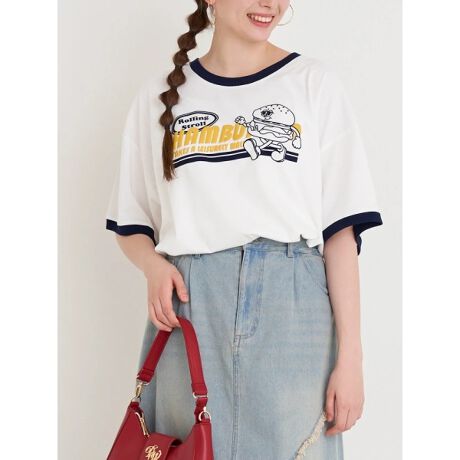ポップなハンバーガーのキャラクタープリントがチャーミングなリンガーTシャツ