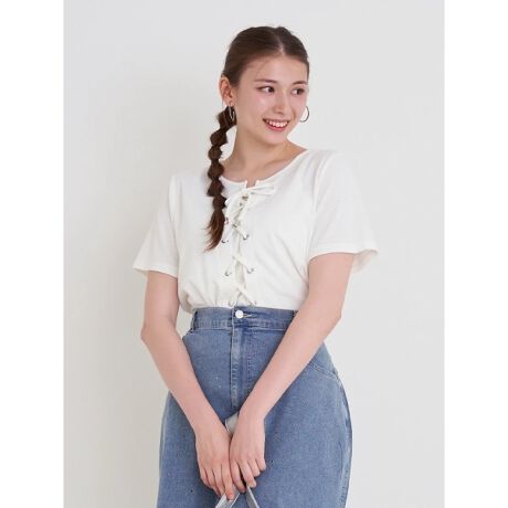 ドロストリボンがレディなアクセントをプラスするトップス。