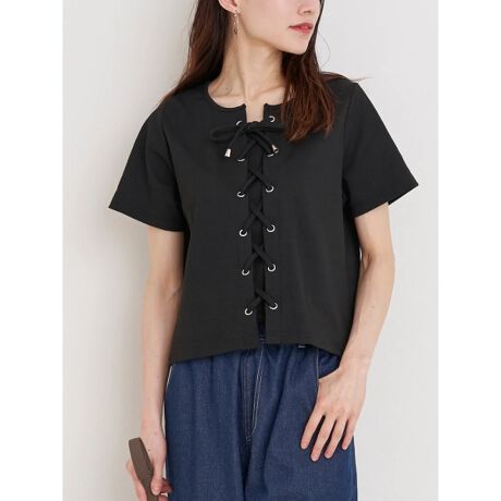 ドロストリボンがレディなアクセントをプラスするトップス。