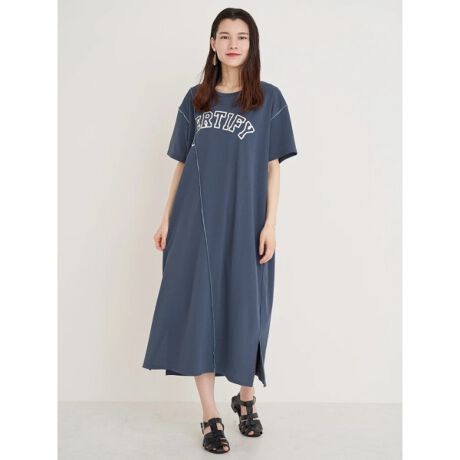 リメイク風ロゴプリントメローワンピース